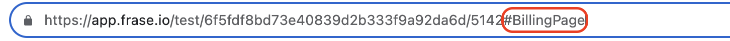 For example, the hash for a billing page could be something like #BillingPage. Then when opening the Test Sandbox from the button at the top right, paste the url hash at the end of the url (example in screenshot below) and press enter/return on your keyboard.