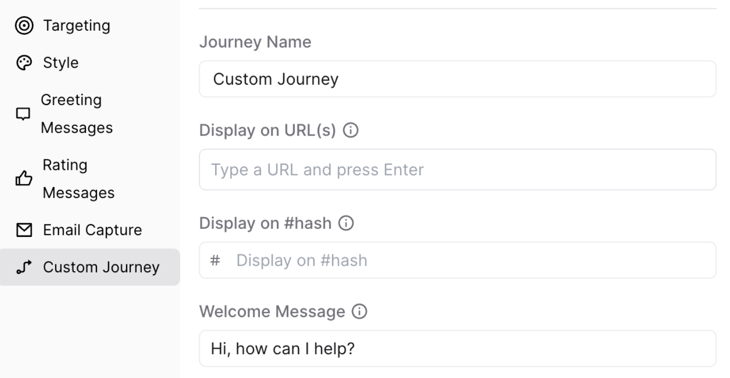๐ก Custom Journeys are ideal for tailoring the chatbot to content like pricing pages, product launches, or campaign-specific landers.