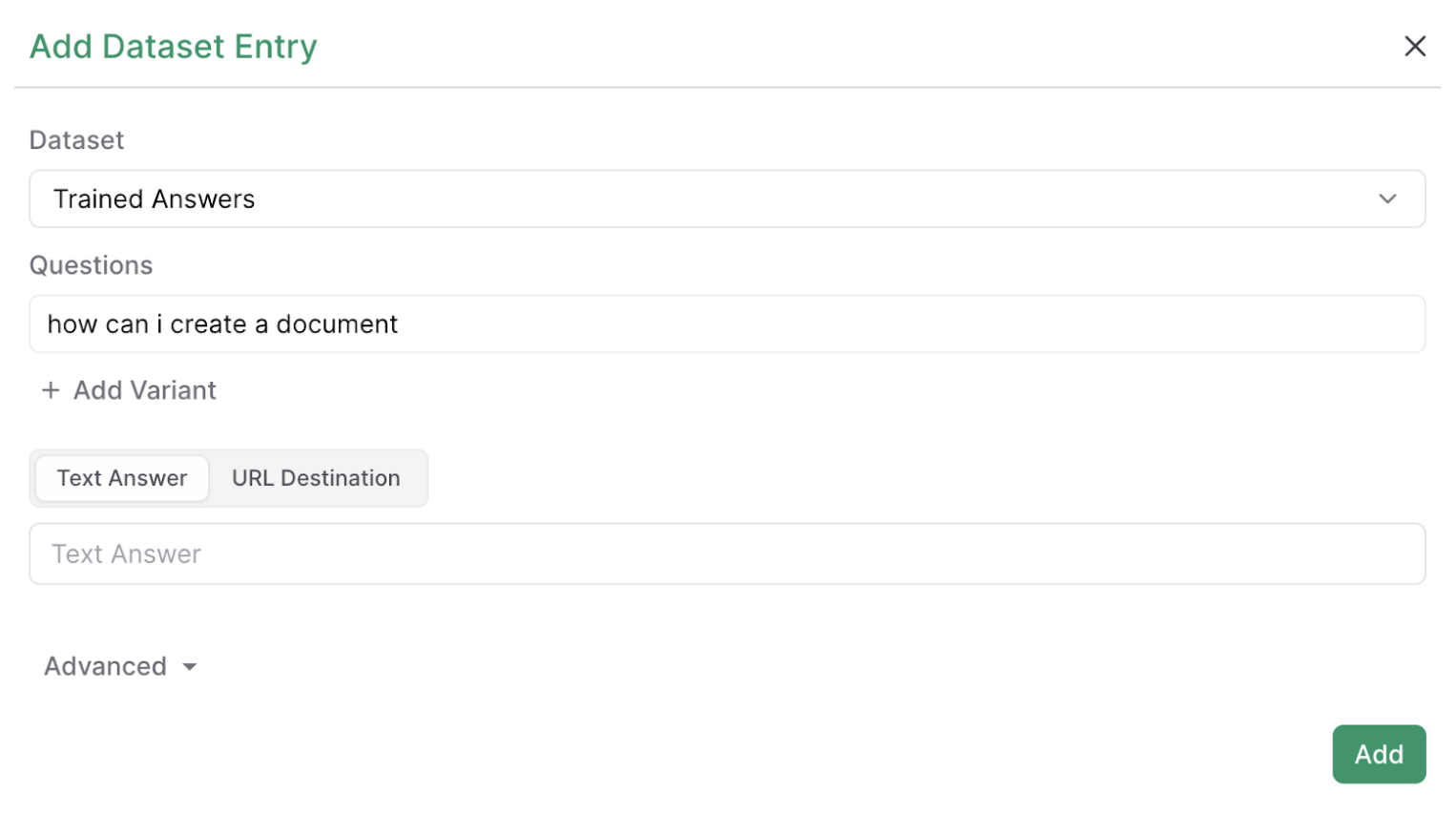- Variant of Existing: Attach this question as a variant to an existing trained answer.